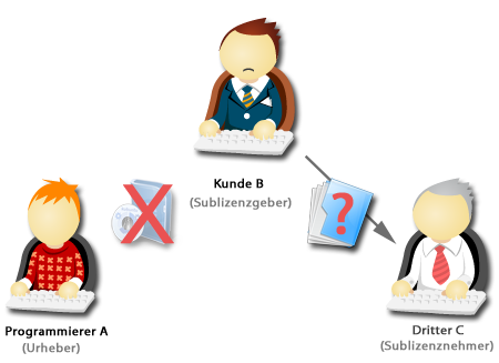 Der Fall handelte von einer typischen Dreiecksbeziehung im Urheberrecht: Ein Programmierer (A) hatte eine Software erstellt und seinem Kunden (B) die ausschließlichen Nutzungsrechte dafür eingeräumt – einschließlich des Rechts, Sublizenzen einzuräumen. Der Kunde übertrug nun wiederum einem Dritten (C) ein einfaches Nutzungsrecht an der Software.