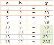 Damit die Aufgabe gelöst werden kann, muss eine mathematische Formel gefunden werden. In diesem Falle ist die Formel relativ einfach: y = a*b+b-1, und damit die Antwort auf die letzte Zeile „98“. Wenn die Formel gefunden wurde, kann sie auf jede a/b-Kombination eingesetzt werden.