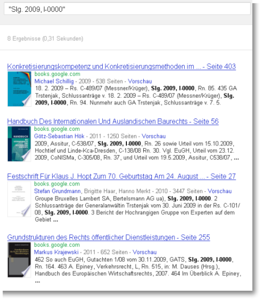 Und so kommt es, dass nun in allen möglichen Handbüchern, Kommentaren, Zeitschriften und Urteilsdatenbanken EuGH-Urteile mit falschen Fundstellenangaben stehen. Google Books liefert einen Einblick, wie diese fehlerhaften Angaben sich fortpflanzen: