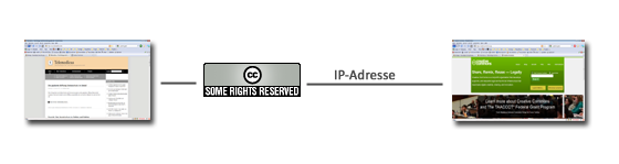 Ein Beispiel: Viele Internetseiten binden ein Logo von Creative Commons ein, um ihre Inhalte als frei zu deklarieren. Oft ist dieses Logo nicht direkt auf der jeweiligen Seite gespeichert, sondern wird von creativecommons.org aus eingebunden. Bei jedem Aufruf der Webseite findet daher eine Übertragung der IP-Adresse an creativecommons.org statt. Ob die IP-Adresse dort gespeichert wird, weiß man nicht und man hat auch keinen Einfluss darauf.