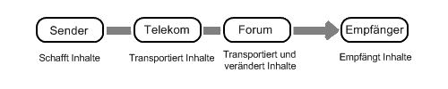 Diese ersten beiden Ebenen sind relativ leicht voneinander zu trennen: Im einen Fall ist jemand die ursprüngliche Quelle der Informationen und bestimmt ihre Inhalte im wesentlichen selbst, im anderen Fall verbreitet eine Person diese Informationen lediglich unverändert weiter. Diese scharfe Trennung wird unscharf, wo es in der mittleren Ebene um Informationen geht, die zwar ursprünglich fremde Informationen sind, während des Kommunikationsvorganges aber verändert werden. Diese Ebene wird in der Literatur kontrovers eingeordnet: Gola/Klug nennen sie beispielsweise „Ebene der Transportbehälter“ (Gola/Klug, Grundzüge des Datenschutzrechts, S. 189). Diese Ebene, geregelt im Wesentlichen im TMG und im RStV, ist von Inkonsistenz und logischen Durchbrechungen geprägt. Zwar werden auf dieser Ebene hauptsächlich fremde Informationen weiterverbreitet – teilweise werden diese jedoch um eigene Informationen ergänzt oder neu arrangiert. Ein typisches Beispiel für einen solchen „Transportbehälter“ ist ein Internetforum, in dem der Forenbetreiber eigene Inhalte (die Forenarchitektur) mit Inhalten verschiedener anderer Personen kombiniert.