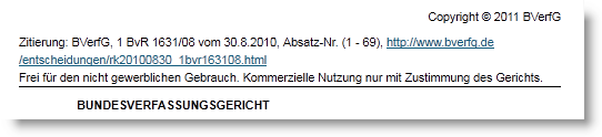 Doch auch Gerichte scheinen dieses Leistungsschutzrecht für sich in Anspruch zu nehmen. Selbst das Bundesverfassungsgericht hat einen „Copyright“-Vermerk über seinen Urteilen stehen. „Zur nicht-gewerblichen Nutzung freigegeben“ ist die übliche Formulierung auch bei vielen anderen Gerichten.
